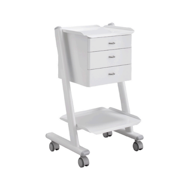 Carrito de Zilfor para clínicas dentales. Cuenta con tres cajones de almacenamiento. Un carrito que destaca por ser silencioso y cómodo de mover.